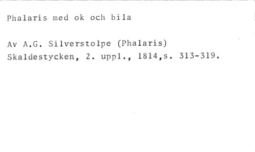 Phalaris med ok och bila //// Av A.G. Silverstolpe (Phalaris) //// Skaldestycken, 2. uppl., 1814,s. 313-319.