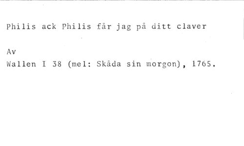 Philis ack Philis fär jag på ditt claver //// Av //// Wallen I 38 (rue l: Skåda sin morgon), 1765.