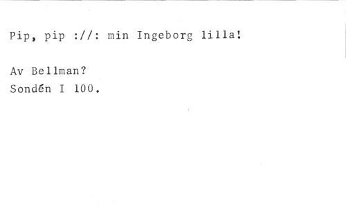 Pip, pip ://: min Ingeborg lilla! //// Av Bellman? Sond6n I 100.