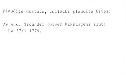 Plaudite Gustavo, collecti plaudite Cives! //// Av And. Nicander (tfwer Riksdagens slut) DA 27/1 1779.
