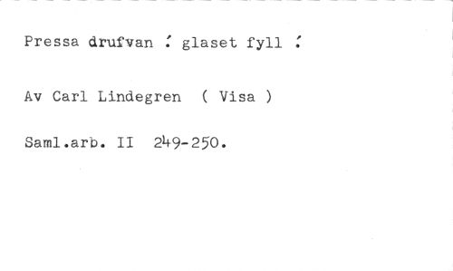 Pressa drufvan : glaset fyll //// Av Carl Lindegren ( Visa ) Saml.arb. II 249-250.