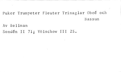 Pukor Trumpeter Fleuter Trinaglar °bob' och //// Bassun //// Av Bellman //// Sond6n II 71; Völschow III 25.