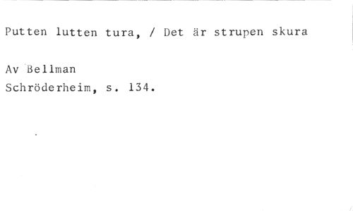 Putten lutten tura, / Det är strupen skura //// Av Bellman //// Schröderheim, s. 134.