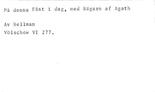 På denna Fäst i dag, med Bägarn af Agath //// Av Bellman //// Völschow VI 277.