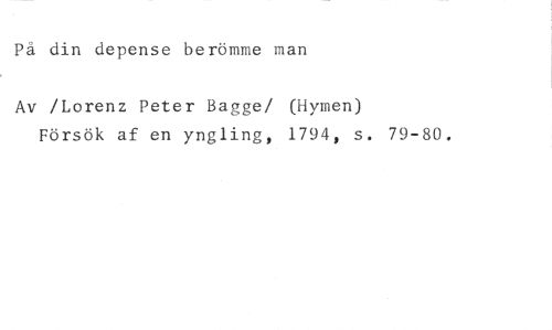 din depense berömme man //// Av /Lorenz Peter Bagge/ (Hymen) //// Försök af en yngling, 1794, s. 79-80.