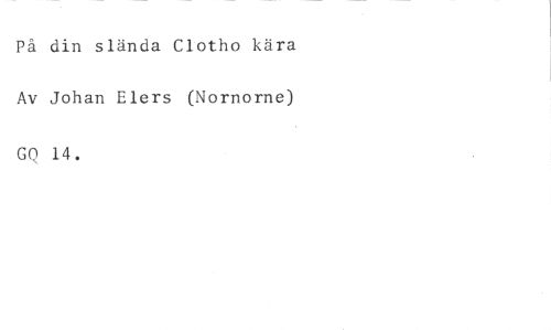 På din slända Clotho kära //// Av Johan Elers (Nornorne) //// GO 14.