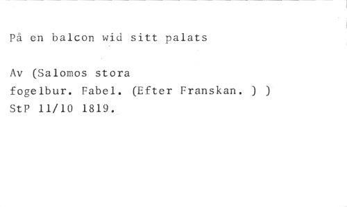 På en balcon wid sitt palats //// Av (Salomos stora //// fogelbur. Fabel. (Efter Franskan. ) ) StP 11/10 1819.