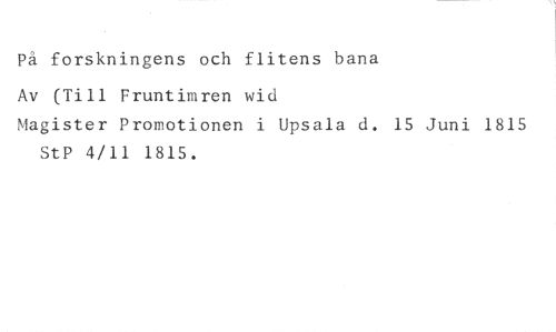 På forskningens och flitens bana //// Av (Till Fruntimren wid //// Magister Promotionen i Upsala d. 15 Juni 1815 StP 4/11 1815.