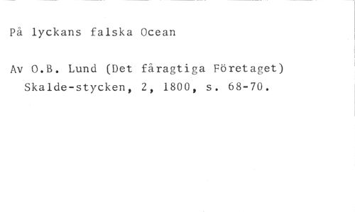 Pä lyckans falska Ocean //// Av O.B. Lund (Det fåragtiga Företaget) //// Skalde-stycken, 2, 1800, s. 68-70.