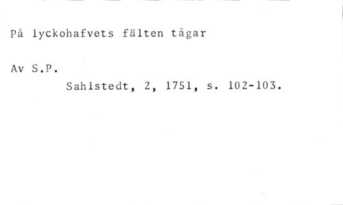 lyckohafvets fälten tågar //// Av S.P. //// Sahlstedt, 2, 1751, s. 102-103.