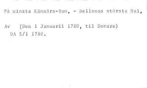 På minsta Kämnärs-Rum, - Bellonas största Sal, //// Av (Den 1 Januarii 1780, til Domare) //// DA 5/1 1780.