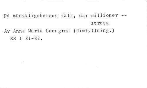 På mänskligehetens fält, där millioner //// streta //// Av Anna Maria Lenngren (Rimfyllning.) SS I 81-82.