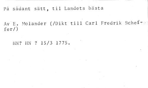 Pä sådant sätt, til Landets bästa //// Av E. Molander (/Dikt till Carl Fredrik Schef., fer/) //// FIN? HN ? 15/3 1775.