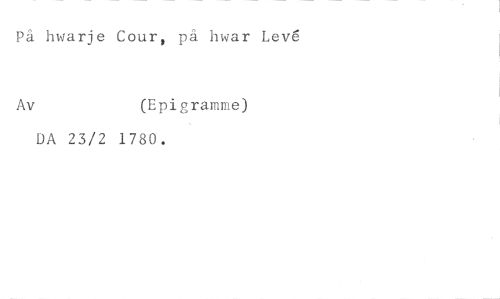På hwarje Cour, på hwar Leve' //// Av (Epigramme) //// DA 23/2 1780.