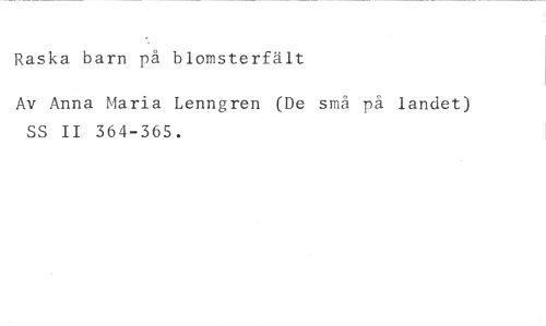 Raska barn blomsterfält //// Av Anna Maria Lenngren (De små på landet) SS II 364-365.