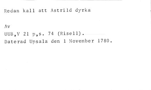 Redan kall att Astrild dyrka //// Av //// UUB,V 21 p,s. 74 (Risell). //// Daterad Upsala den 1 November 1780.