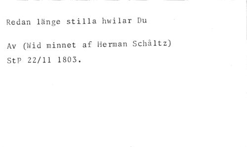 Redan länge stilla hwilar Du //// Av (Wid minnet af Herman Schåltz) StP 22/11 1803.