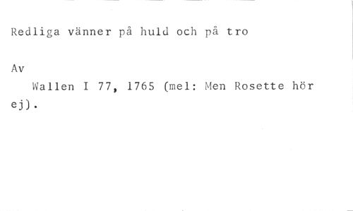 Redliga vänner på huld och på tro //// Av //// a'a11en I 77, 1765 (mel: Men Rosette hör ej).