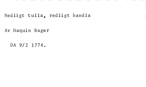 Redligt tulla, redligt handla Av Haquin Bager DA 9/2 1774.