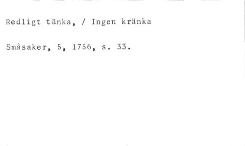 Redligt tänka, / Ingen kränka //// Småsaker, 5, 1756, s. 33.