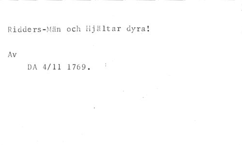 Ridders-Män och Hjältar dyra! //// Av //// DA 4/11 1769.