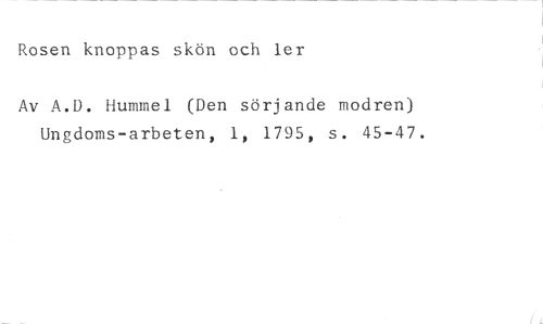 Rosen knoppas skön och ler //// Av A.D. Hummel (Den sörjande modren) Ungdoms-arbeten, 1, 1795, s. 45-47.
