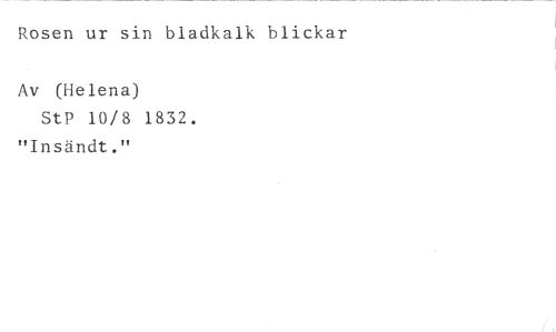 Rosen ur sin bladkalk blickar //// Av (Helena) //// StP 10/8 1832. "Insändt."