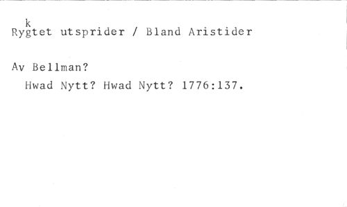 k //// Rygtet utsprider / Bland Aristider //// Av Bellman? //// Hwad Nytt? Hwad Nytt? 1776:137.