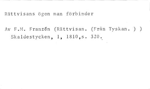 Rättvisans ögon man förbinder //// Av F.M. Franzén (Rättvisan. (Från Tyskan. ) ) Skaldestycken, 1, 1810,s. 320.