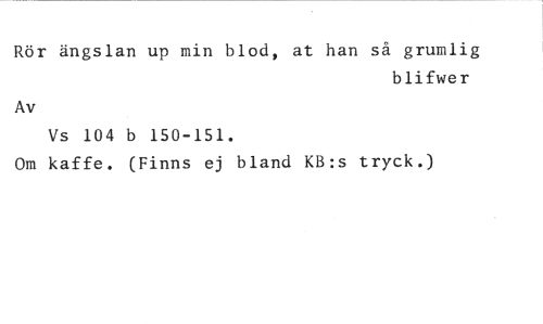 Rör ängslan up min blod, at han så grumlig //// blifwer //// Av //// Vs 104 b 150-151. //// Om kaffe. (Finns ej bland KB:s tryck.)