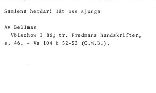 Samlens herdar! låt oss sjunga //// Av Bellman //// Völschow 1 86; tr. Fredmans handskrifter, s. 46. - Vs 104 b 52-53 (C.M.B.).