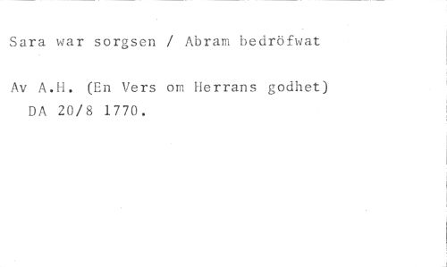 Sara war sorgsen / Abram bedröfwat //// Av A.H. (En Vers om Herrans godhet) DA 20/8 1770.
