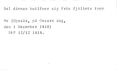 Se! dimman hwälfwer sig från fjällets topp //// Av (Upsala, på Oscars dag, den 1 December 1818) StP 12/12 1818.