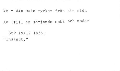 Se - din make ryckes frän din sida Av (Till en sörjande maka och moder //// StP 19/12 1826. "Insändt."