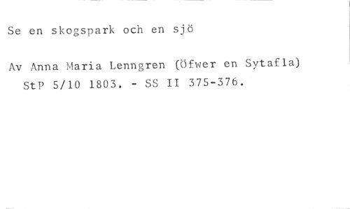 Se en skogspark och en sjö //// Av Anna Maria Lenngren (Öfwer en Sytafla) StP 5/10 1803. - SS II 375-376.