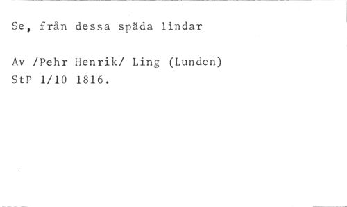 Se, från dessa späda lindar //// Av /Pehr Henrik/ Ling (Lunden) StP 1/10 1816.