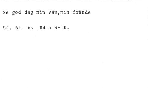 Se god dag min vän,min frände //// Så. 61. Vs 104 b 9-10.