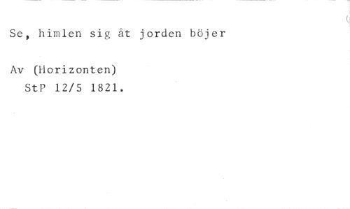 Se, himlen sig åt jorden böjer //// Av (Horizonten) StP 12/5 1821.
