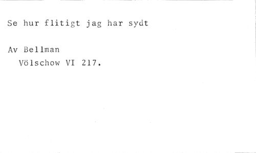 Se hur flitigt jag har sylt //// Av Bellman //// Völschow VI 217.