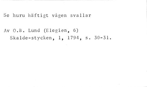 Se huru häftigt vågen svallar //// Av O.B. Lund (Elegien, 6) //// Skalde-stycken, 1, 1794, s. 30-31.