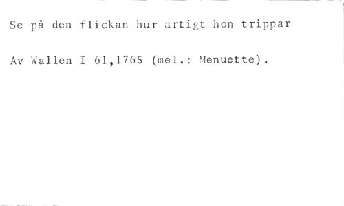 Se på den flickan hur artigt hon trippar //// Av Wallen I 61,1765 (mel.: Menuette).