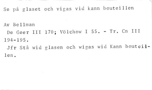 Se på glaset och vigas vid kana bouteillen //// Av Bellman //// De Geer III 170; Völchow I 55. - Tr. Cn III 194-195. //// Jfr Stå wid glasen och wigas wid Kann bouteillen.