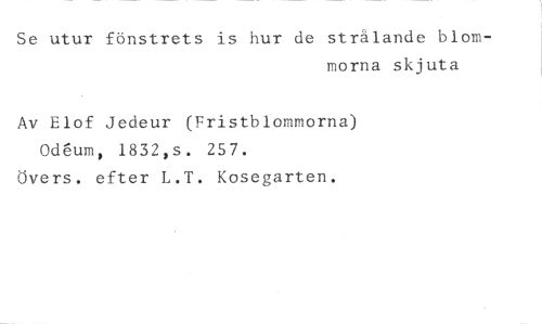 Se utur fönstrets is hur de strålande blom- //// morna skjuta //// Av Elof Jedeur (vristblommorna) {deum, 1832,s. 257. //// Övers. efter L.T. Kosegarten.