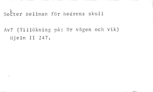 Setter Bellman för hedreps skull //// Av? (Tillökning på: Ur vägen och vik) Hjelm II 247.