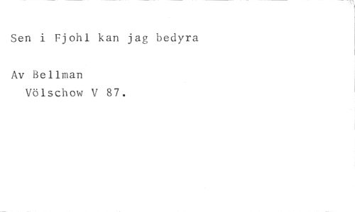 Sen i Fjohl kan jag bedyra //// Av Bellman //// Völschow V 87.