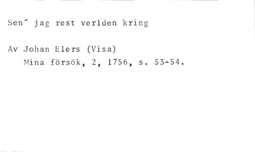 Sen' jag rest verlden kring //// Av Johan Elers (Visa) //// Mina försök, 2, 1756, s. 53-54.