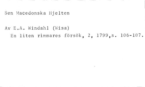 Sen Macedonska lijelten //// Av E.A. Windahl (Wisa) //// En liten rimmares försök, 2, 1799,s. 106-107.