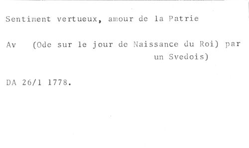Sentiment vertueux, amour de la Patrie //// Av (Ode sur le jour de Naissance du Roi) par //// un Svedois) //// DA 26/1 1778.