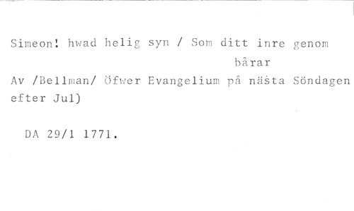 Simeon! hwad helig syn / Som ditt inre genom //// bårar //// Av /Bellman/ t5fwer Evangelium på näåta Söndagen efter Jul) //// DA 29/1 1771.