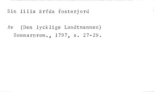 Sin lilla ärfda fosterjord //// Av (Den lycklige Landtmannen) Sommarprom., 1797, s. 27-29.